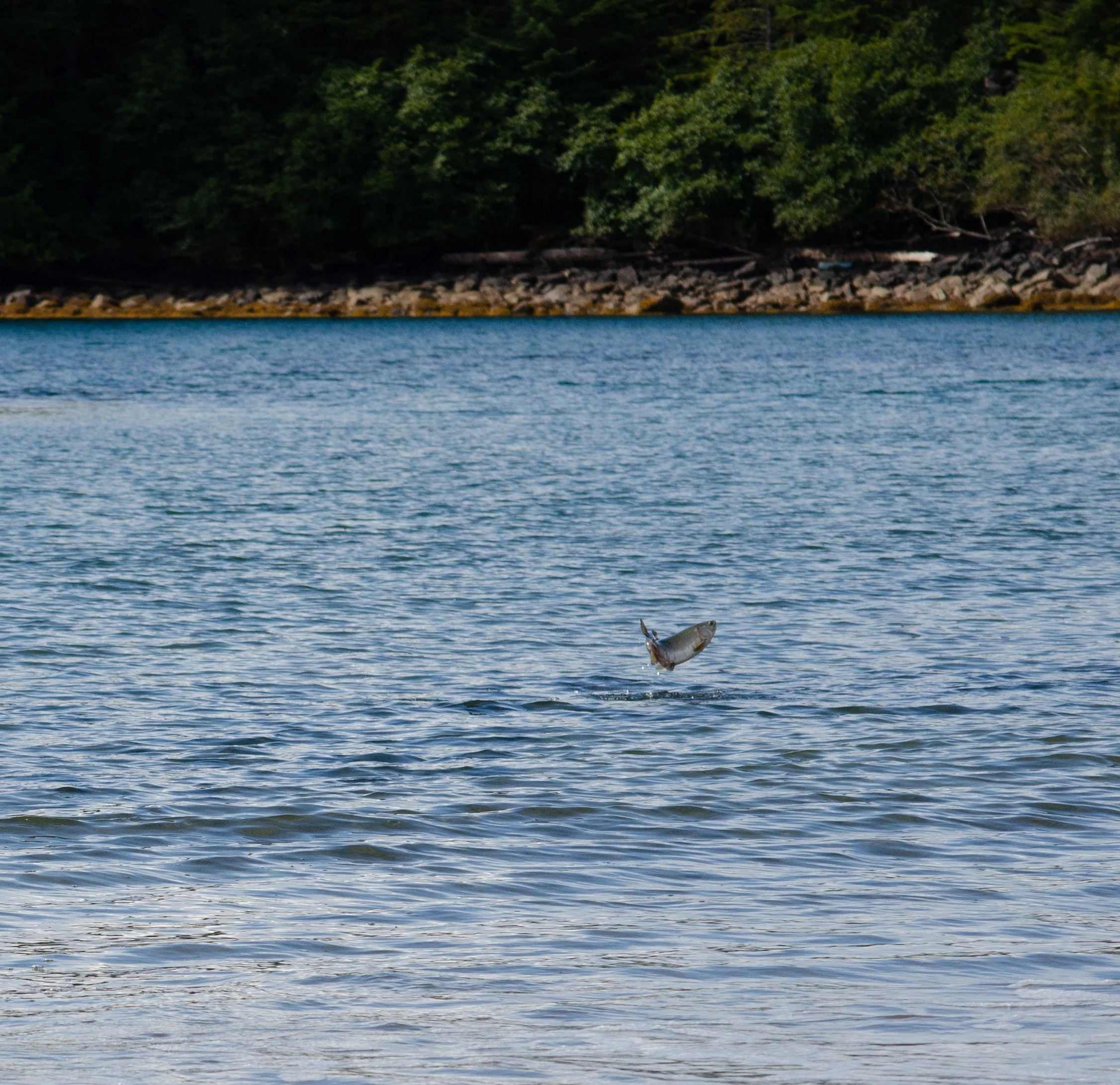 While we were there we noticed a dark swath in the water just off the shore, and after watching for a few moments we realized that it was literally hundreds, if not thousands, of salmon! They were literally leaping out of the water, one after another, like nothing either of us had ever seen. Both of us come from ocean and fishing backgrounds yet still, this was unlike anything we’d ever seen before.