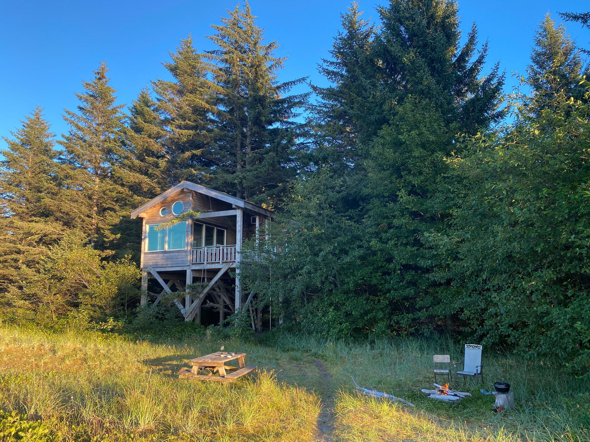 No matter how I write it, words really just fall short of describing Haida Gwaii. I'm writing this in our luxury treehouse rental suspended up in the old growth forest overlooking seemingly endless sand dunes and a river leading out to the gigantic sandy beach with the tips of Alaskan mountains just visible over the horizon. We've had nothing but sunshine and blue skies every day up here in Haida Gwaii and we feel so lucky for it.