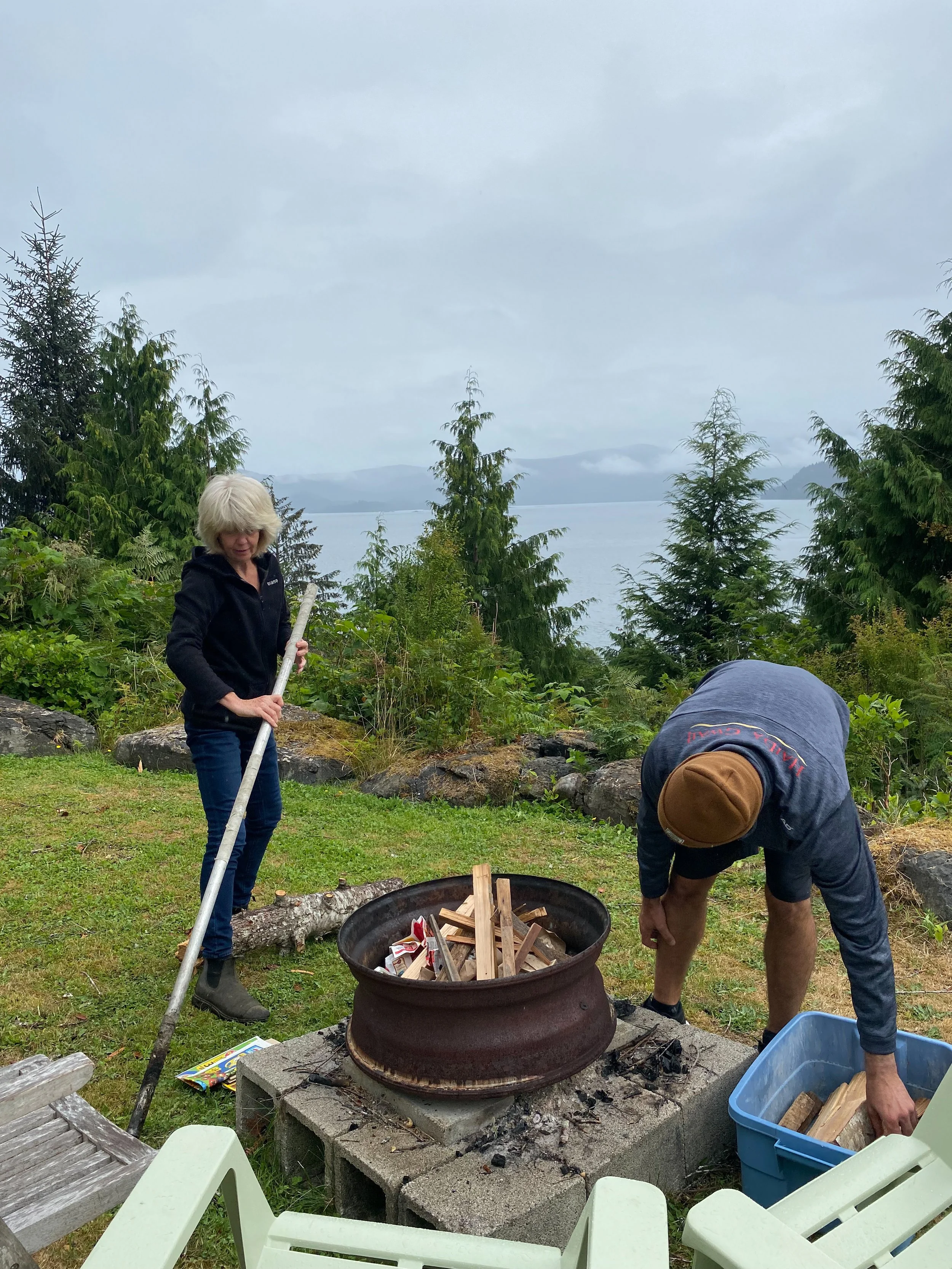 It’s funny that despite growing up on Haida Gwaii, I never took the opportunity to take a tour down to Gwaii Haanas (Islands of Beauty), the protected southern half of Haida Gwaii. The following day the four of us left early in the morning to take a boat expedition down to the magical Hot Springs Island way down the coast into Gwaii Haanas. There are a handful of ancient Haida village sites, some with poles still standing, along with an island filled with natural hot springs which ceased running after a huge earthquake around a decade ago and only just returned a few years ago after a subsequent earthquake. We saw too many whales to count! We went to Windy Bay, an ancient Haida village site, and had a cultural tour while there and got to see the Gwaii Haanas Legacy Pole. After that we got back on the landing craft and went the rest of the way down to the hot springs and got to bathe in the most stunning hot springs I've ever seen, up on a ledge overlooking the ocean, surrounded by stunted old growth and hundreds if not thousands of abalone shells that the watchmen who guard the place had collected over the years. Pat and Art both swam in the ocean before getting into the hot springs. On the way back, we had an unexpected bonus stop at another ancient Haida village site called Skedans (usually an entirely different tour) where we got to see a bunch of remains of old totem poles and village house sites. It was absolutely magical. We saw many more whales on the way, along with a blue shark! Our tour guide was Haida Style Expeditions and we can’t recommend them enough! Fresh salmon and halibut for lunch along with a huge spread of salads, meats, and cheeses, a super informative tour guide, and Captain Glen did a top notch job of not only finding whales on the way down, but also navigating the rough conditions on the way home.